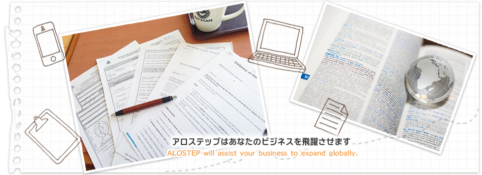 ALOSTEP is an English/Japanese consulting firm whose motto is to provide kind service and precise jobs for any kind of language needs.